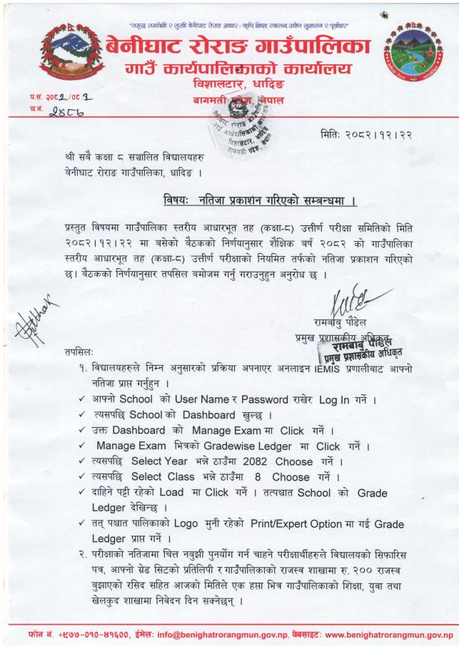 आधारभूत तह (कक्षा -८) परीक्षाको नतिजा