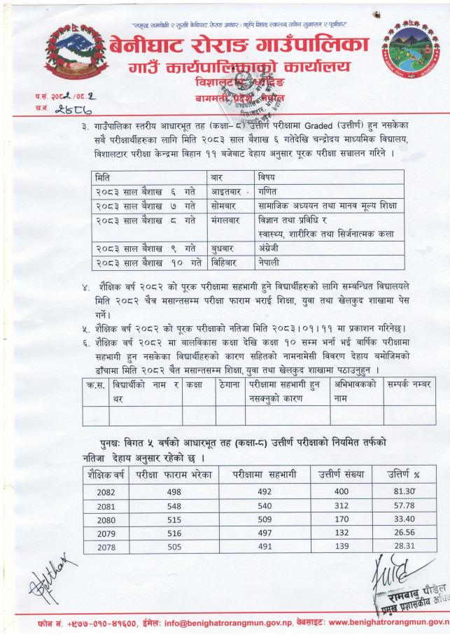 आधारभूत तह (कक्षा -८) परीक्षाको नतिजा