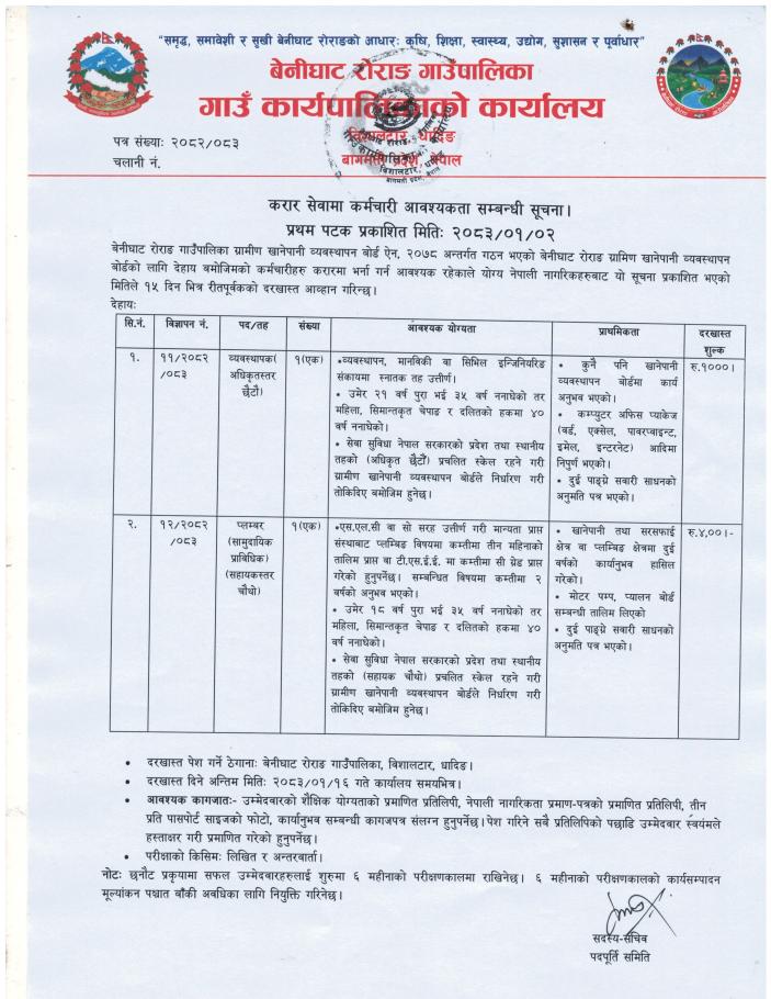 करार सेवामा कर्मचारी आवश्यकता सम्बन्धी सूचना !!!