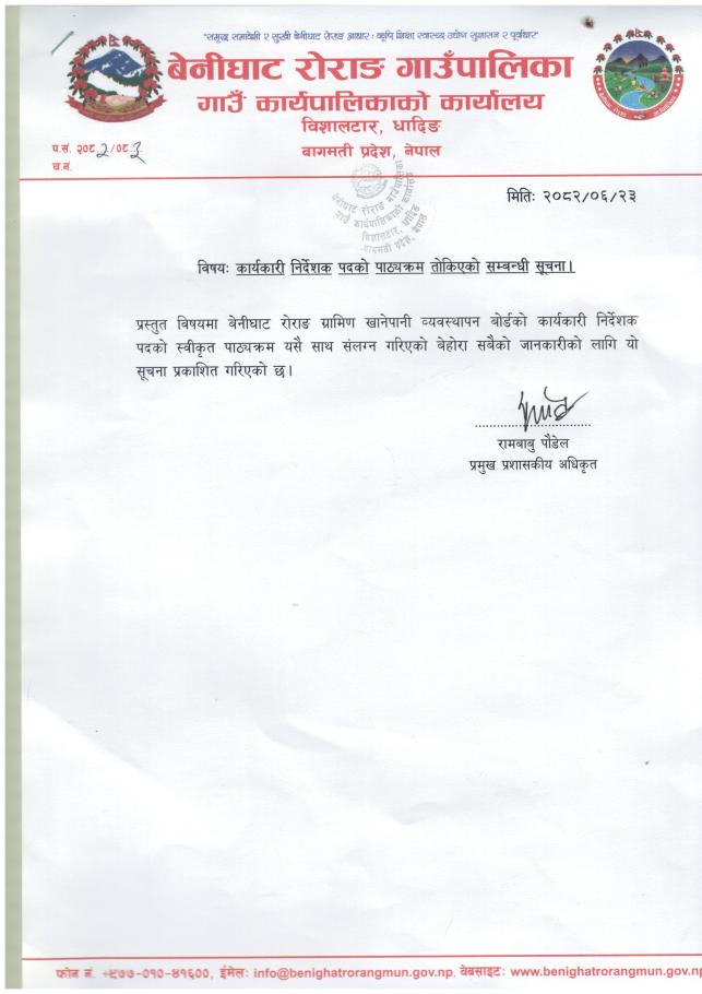 कार्यकारी निर्देशक पदको पाठ्यक्रम तोकिएको सम्बन्धमा सूचना ।