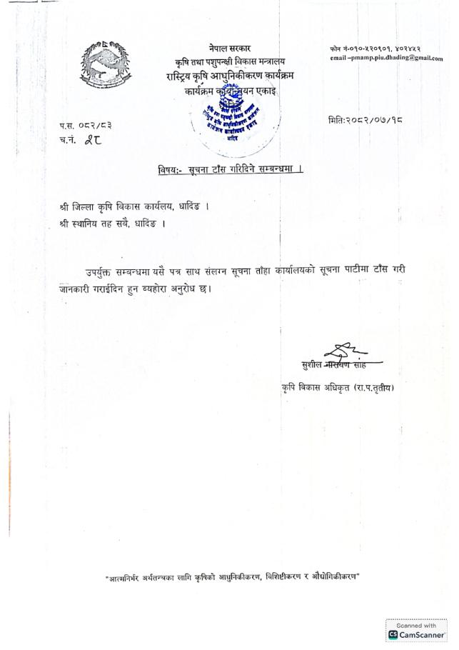 कृषि तथा पशुपन्छी उद्यमशिलता विकास कार्यक्रम संचालनका लागि प्रस्ताव आव्हान सम्बन्धी सूचना