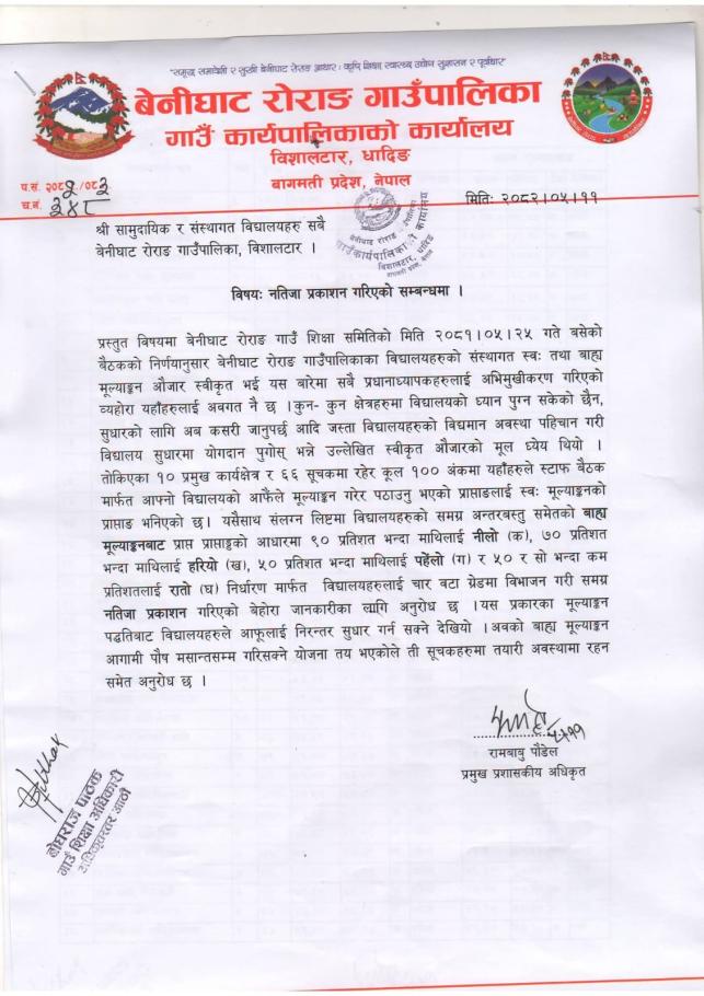 " समृद्ध, समावेशी र सुखी बेनीघाट रोराङको आधार कृषि, शिक्षा, स्वास्थ्य, उधोग, सुशासन र पूर्वाधार"