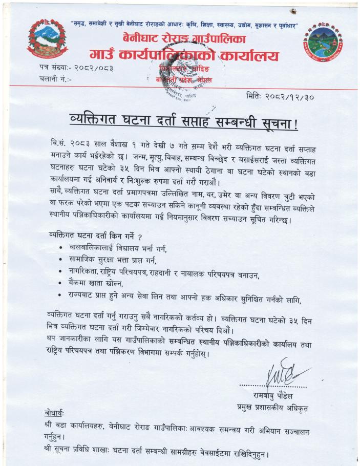 व्यक्तिगत घटना दर्ता सप्ताह सम्बन्धी सूचना !!!!