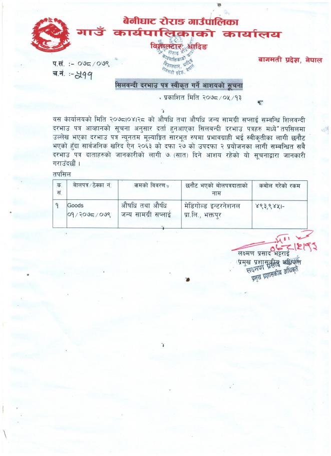 सिलबन्दी दरभाउ पत्र स्वीकृत गर्ने आशयको सूचना |